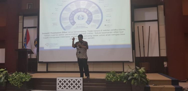zoomDr. Pratama Persadha saat menjadi pembicara kuliah umum keamanan siber di Universitas Islam Indonesia (UII) Yogyakarta, 29 Desember 2018.